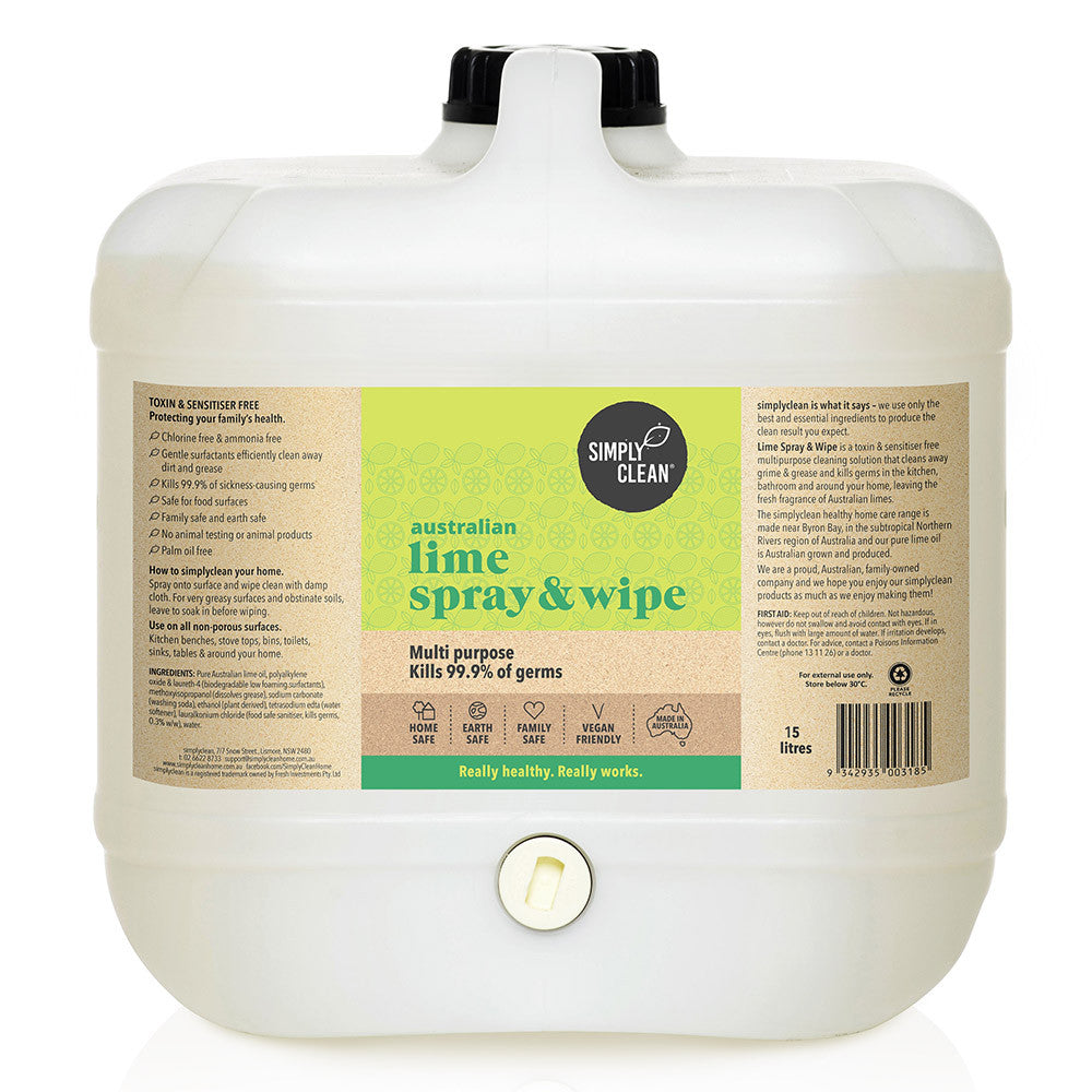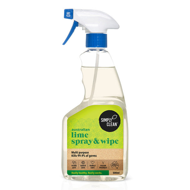 Australian Lime Spray and Wipe is a toxin and sensitiser free multipurpose disinfectant cleaner. This cleaner tackles grime, dust and grease and kills household germs in the kitchen, bathroom and around your home, leaving the fresh fragrance of pure Australian lemon myrtle.