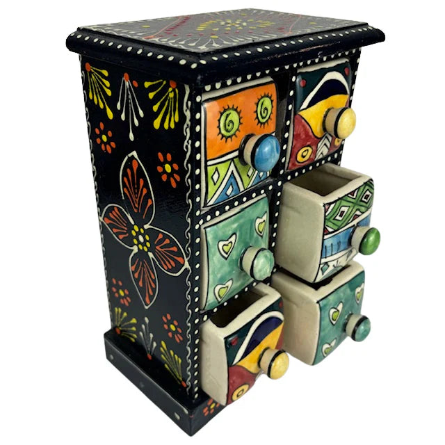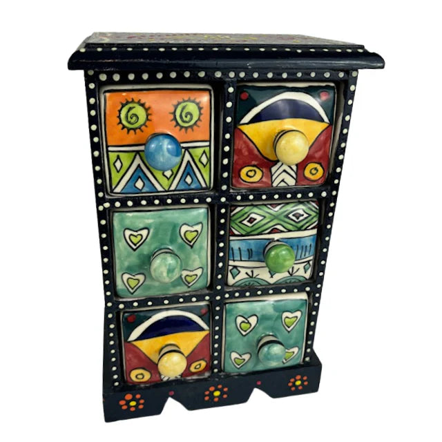 Ceramic Single Drawer Dark Blue with Hand Painting 16x10x24cms